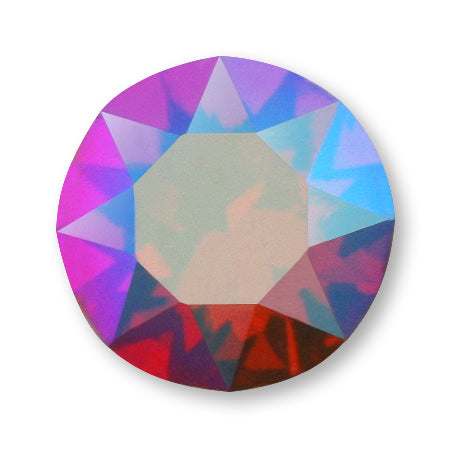 専用の石座に留めたり、ビーズで周りを囲むように編んだりして使用します。透明なクリスタルガラスの表面にシマーエフェクトが施されているため、元々のカラーやエフェクトのブルー・イエローが見えたりと、角度によって様々に変化する華やかできれいなカラーです。 (F...フォイル加工あり unf...フォイル加工なし)