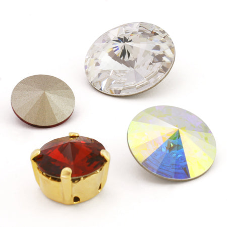 専用の石座に留めたり、ビーズで周りを囲むように編んだりして使用します。(F...フォイル加工あり unf...フォイル加工なし)