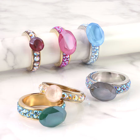 専用の石座に留めたり、ビーズで周りを囲むように編んだりして使用します。透明なクリスタルガラスの表面にシマーエフェクトが施されているため、元々のカラーやエフェクトのブルー・イエローが見えたりと、角度によって様々に変化する華やかできれいなカラーです。 (F...フォイル加工あり unf...フォイル加工なし)