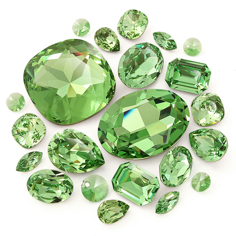 14×10mmは原材料の一部に、クリスタルの製造過程で発生する破損したクリスタルを利用している再生クリスタルです。品質を損なうことなく、限りある資源と環境負荷に配慮した革新的な技術により生み出された特別なカラーです。ペリドットとRCペリドットで色味に差はありません。