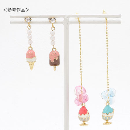 貴和製作所オリジナル商品です。カンのサイズは約0.8×3mmです。片面にエポとデザインが施されています。コーンに2つのフレーバーアイスを贅沢にのせた可愛いデザインです。小さめのサイズなので他のフードチャームと組み合わせたりワンポイントとしても使用できます。
