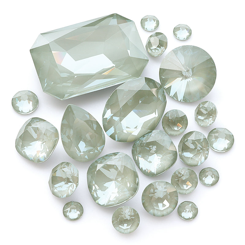 専用の石座に留めたり、ビーズで周りを囲むように編んだりして使用します。裏面に施したラッカーの内側にイグナイトエフェクトを施しています。シックで落ち着いたカラーのラッカーと宝石のような煌めきのイグナイトエフェクトがカット面を際立たせ、透明感のある輝きが特徴です。