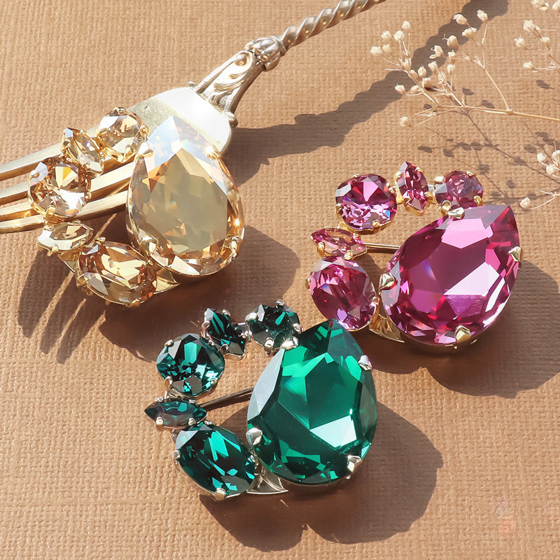 専用の石座に留めたり、ビーズで周りを囲むように編んだりして使用します。(F...フォイル加工あり unf...フォイル加工なし)