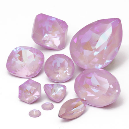 専用の石座に留めたり、クレイに埋め込んで使用します。ビーズで周りを囲むフレーミングにもおすすめです。裏面に施したラッカーの内側にディライトエフェクトを施しています。そのためディライトエフェクトが立体的にカット面をより一層輝かせ、見る角度によって見せる様々な表情と深みのある透明感が特徴です。春夏に映えるキュートでフェミニンなカラーです。
