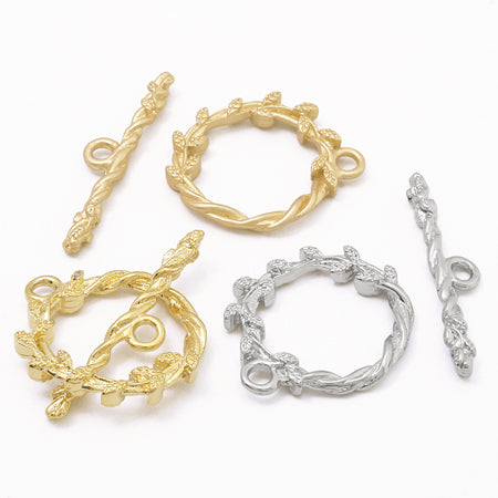 素材は亜鉛合金です。アクセサリーの留め金具です。輪にバーを通して使用します。 着用時に外れにくいよう、バーが少し長めにデザインされています。両面に同じデザインが施されています。