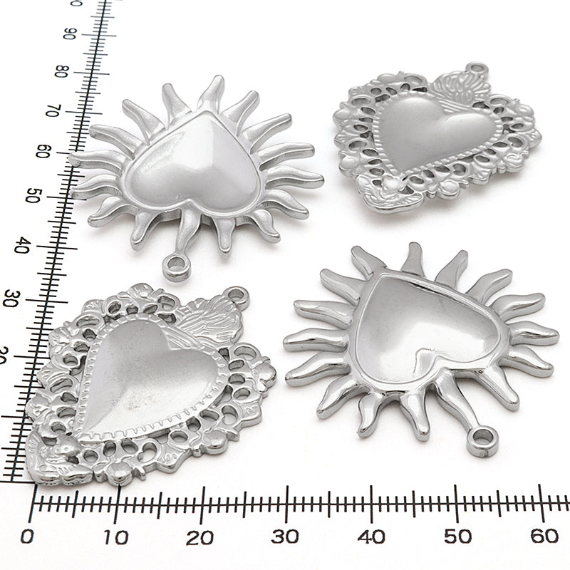 メッキがかかっていない生地です。カンのサイズは約2×4mmです。カン類等でパーツをつなげてご使用ください。