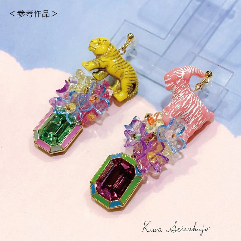貴和製作所オリジナル商品です。貴和クリスタル#4610 14×10mmに使用できます。接着剤で貼り付けてご使用ください。石座の裏面はフラットになっているのでカンの位置を下にして、約9〜10mmの丸皿付きのイヤー金具などに貼り付けてアレンジするのもおすすめです。