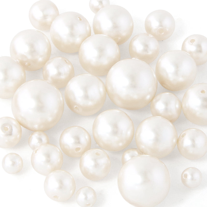 穴のサイズは約0.7〜1mmです。クリスタルガラスの表面に丁寧にコーティングを施したチェコパールで、本物のような質感と柔らかな艶感が特徴です。テグスなどにそのまま通したり、パーツと一緒に編みこんだりと幅広く使用できます。