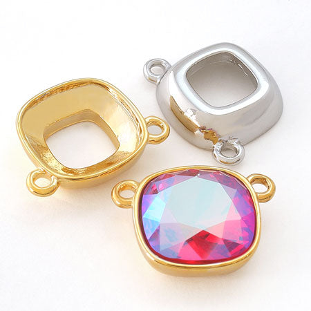 貴和製作所オリジナル商品です。石座の側面は石の形状に合わせて丸みのある自然なラインになっています。石座のフチに向かうにつれて細くなるよう設計された繊細なデザインです。ジュエリーにも使われる技法を施すことで、正面から見た際の繊細で軽やかな印象を作り出しました。貴和クリスタル#4470 10mmに使用できます。接着剤で貼り付けてご使用ください。カンのサイズは約0.8×3mmです。石座の底は抜かれ軽量化されています。