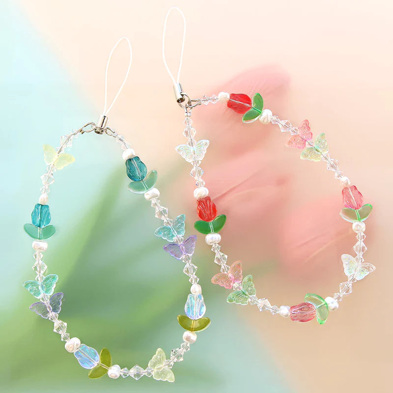 Glass beads with butterfly motifs with patterns on both sides. Each bag contains four colors each.