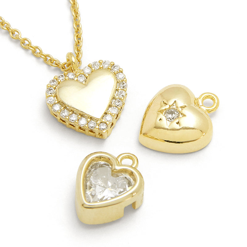 - Charm Cubic Zilconia Plum Lump Heart Gold