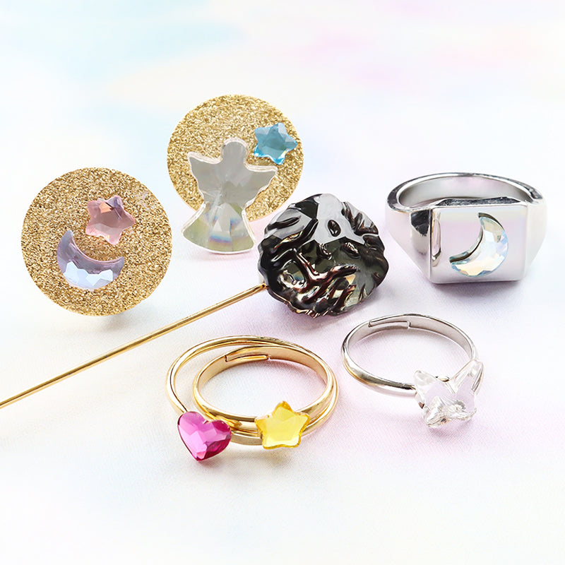 This is a part for pasting with a flat back. We recommend 3mm round plate fittings and signal rings. Please check the size before purchasing. Please attach it with adhesive before use. (F...with foil processing, unf...with no foil processing)