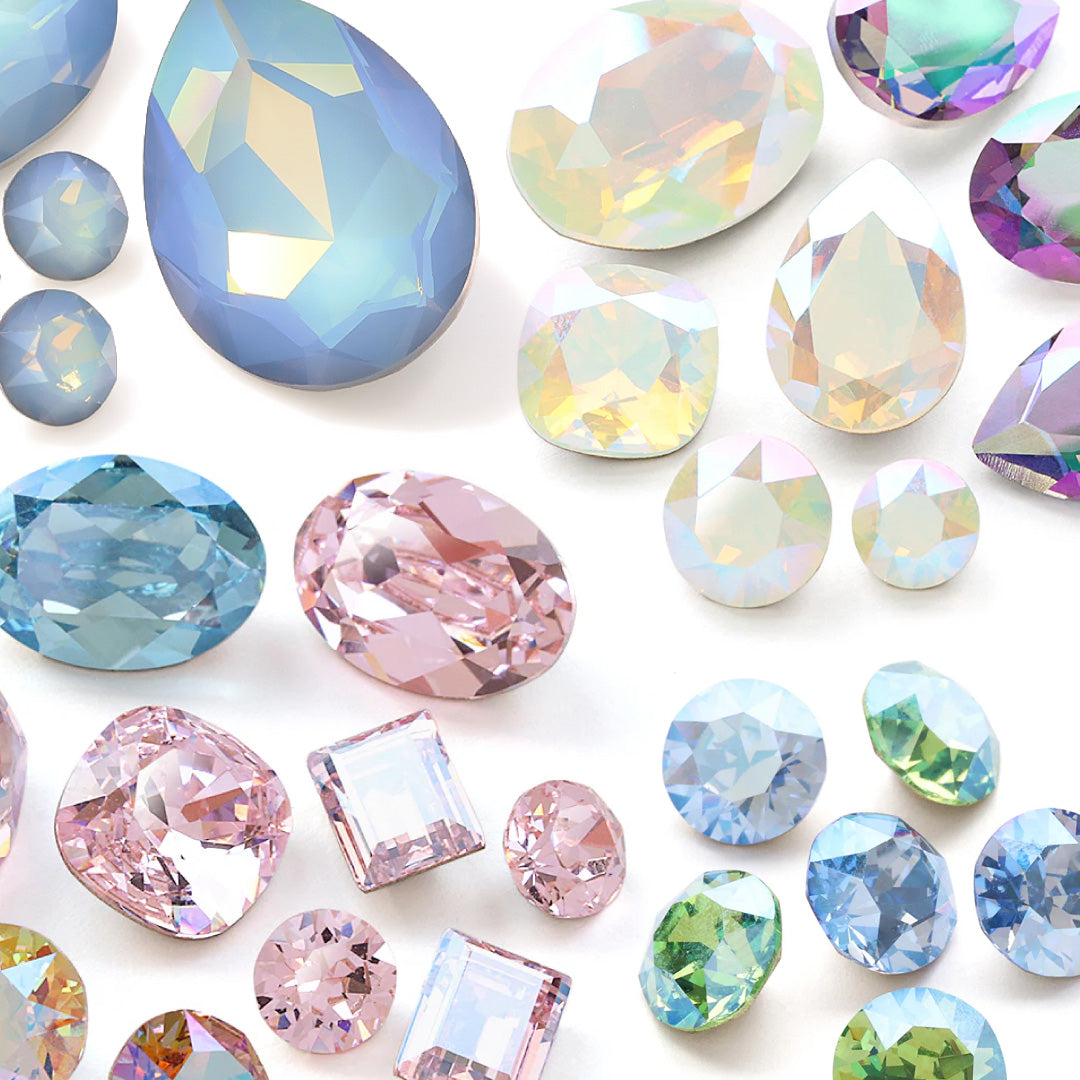 貴和クリスタル最大の特徴は、非常に精密なカット技術によるまばゆい輝きです。これらの高品質なクリスタルガラスは、ファッションやジュエリー分野で実績を持つヨーロッパのメーカーで生産されており、伝統と技術に裏打ちされた品質で、プロから趣味で楽しむ方まで、あらゆるクリエイターに信頼されています。
