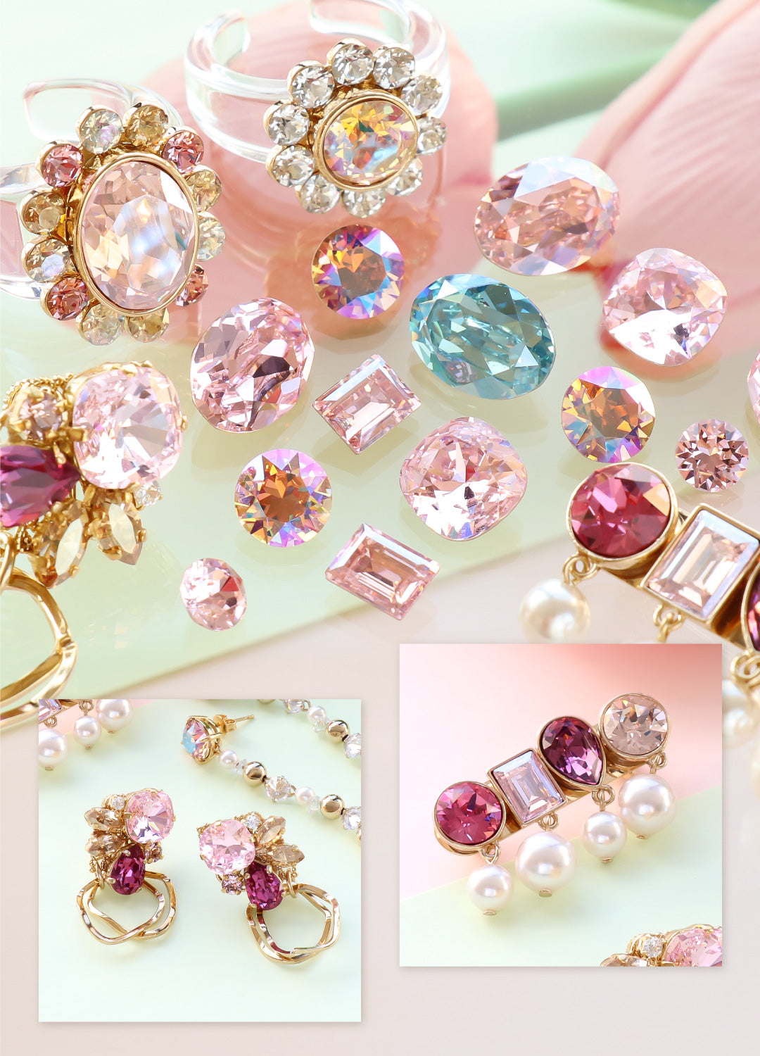 クリスタルをセットする石座などのパーツ類は、輝きを一層引き立てるよう細部にまでこだわって設計されています。