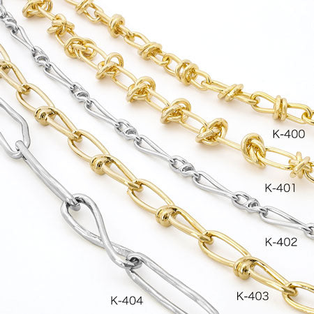 3種類のコマが1コマ1コマ縦と横に交互に連なっています。程よいボリューム感のある個性的なデザインです。コマが大きめなので片側にカニカンなどをつなげるだけで簡単にネックレスやブレスレットなどが作れます。